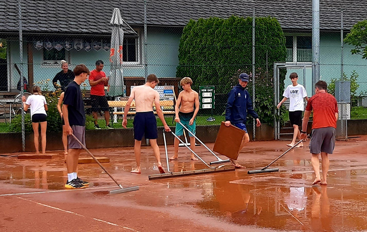 geschafft haben, überschwemmte Tennisplätze wieder bespielbar zu machen (siehe auch Fotos).